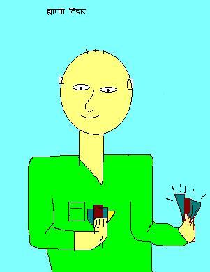 पुन्टेदा बरा सिर्फ् ३ वटा कपाल् बाकि रे'छ,भएन यो तिहार् मा हरियो टोपि गिफ्ट् दिनु पर्यो छोप्न :पि चित्रे मेरो पनि फोटु खिच्देउ न। कुम्ले लाइ भैलेनि गीत् आउदो रे'छ, भरै राति हामि स भैलो खेल्न आउ ब्याक् ग्राउण्ड् मा तिमि गाउ हामि मुख् चलाए जस्तो गर्छौ, अनि पैसा हाम्लाइ चामल् तिम्लाइ बाडौला हुन्च। :D