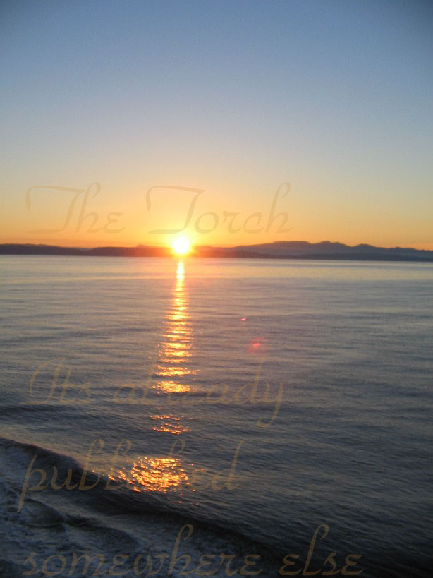 I won a little prize for the following picture (भाडा उठ्यो रे के ), which shows the sunset over the "Strait of Georgia" betwen Victoria and Vancouver. The theme of the picture is "The torch: Illuminating the sky, the land, the sea" Its published somewhere else and even I dont have the entire copyright anymore. Keep rolling...