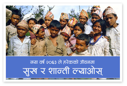 मेरो पनी छ है साथी हो नयाबरस को शुभकामना फेरी भुलीगैछस् नभन्नु होला गाथे ! अनी मेरो स्याङ्जा तिरका सप्पैलाइ नमस्कार छ है अनी २०६३ को शुभकामन गाउगाउमा पुगोस् नी फेरी ,,,! नेपाल भरीका हरेक लाइ यो सालमा फलीफाप होस यही सुभकामना ! मैल्: mjkafle@yahoo.com हो ! बाइ बाइ,,,