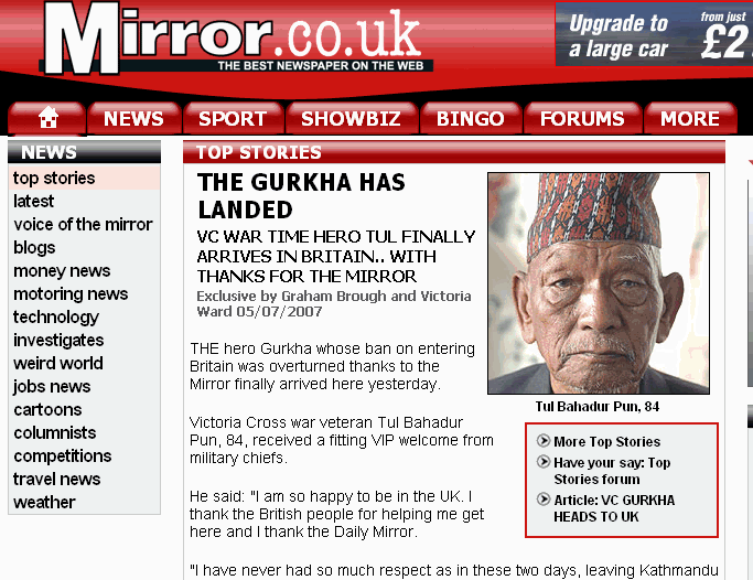 . Gurkha Tul Bahadur Pun VC is to be allowed to settle in the UK! Immigration Minister Liam Byrne said:
