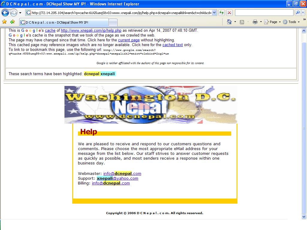 This is how the page looked like, until yesterday http://72.14.205.104/search?q=cache:6UG5ueqS8v0J:www.xnepali.com/ip/help.php+dcnepal+xnepali&hl=en&ct=clnk&cd=2&gl=us Source: Google Cache