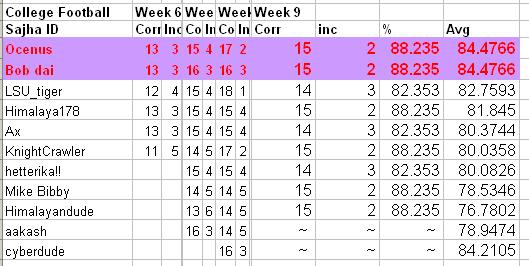 I appreciate your good work LSU_Tiger. Turning out to be a fierce competition.Need to ace out this time.