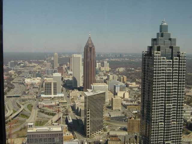 View of Atlanta downtown from Westin Peachtree Plaza, tallest hotel in the western hemisphere (73 stories/723 feet)