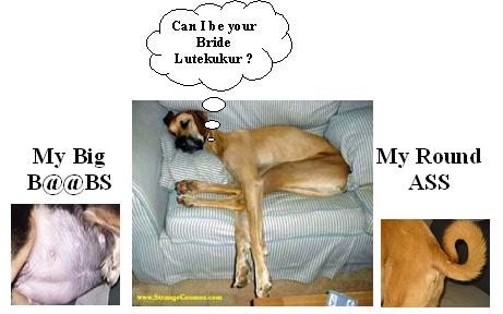 Tiger, I don't see no boobs in your dog... Our groom likes everything big and my latest bride sure has it all.. So, now would you please kindly step back?