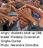 Hopefully, SPA leaders will fear the rage of students and carry on with People's wish rather than power hurdles. So far, SPA has not been able to do the following, which surprises me (ARE THEY SLEEPING?): - Declare Press Freedom immediately; remove all the laws and ban put in place by mofo King - Arrest all those involved in killing the protestors (SR Rana, Kamale etc) - They need to change the heads of Army and Police. Dismiss current IGP and Army Chief cuz they will always be loyal to the King - Declare Cease Fire and bring Maoists to the main stream. Now that most of Maoists demands are close to being met, if they still don't lay down their arms then SERIOUSLY F**K them as they don't want peace in Nepal - Jump start government projects that essentially effects Nepalese like electricity projects, drinking water, education etc. - Importantly, why the hell was Parase not charged when he hit the wedding vehicle. That proves that nothing has been changed and we still have to fear these f**king royals. IF THEY WANT TO PROVE THAT PEOPLE HAVE WON, THEY NEED TO START WORKING ON THESE ASAP. - Peace in Nepal