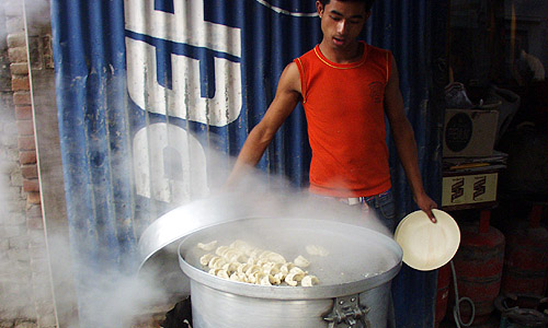 although exactly not the nepali momo, there is this place in Chinatown that sells fried dumplings for dirt cheap. the shop is on Mosco Street (between Mott and Mulberry Street). it has a sign saying 'fried dumplings' and you get 5 for $1. and they taste awesome! dont forget the hot sauce as well.