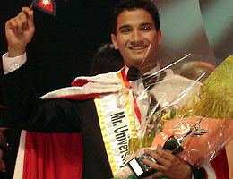 Niraj Baral of Tribhuvan University (Nepal Commerce Campus, Minbhavan) poses for a photo after being declared Mr University International 2006, beating participants from 28 different countries at the 28th Mr and Ms University Pageant held at Manila, the capital of Philippines, on Monday.