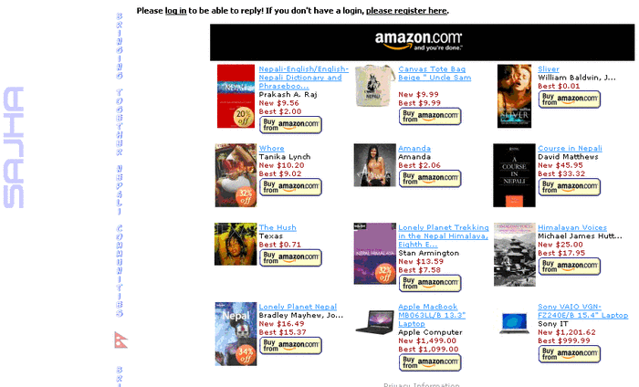NOTE: The opinions here represent the opinions of the individual posters, and not of Sajha.com. It is not possible for sajha.com to monitor all the postings, since sajha.com merely seeks to provide a cyber location for discussing ideas and concerns related to Nepal and the Nepalis. Please send an email to admin@sajha.com using a valid email address if you want any posting to be considered for deletion. Your request will be handled on a one to one basis. Sajha.com is a service please don't abuse it. - Thanks.