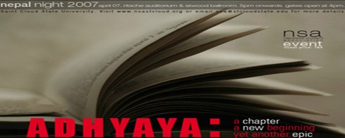 Neplease Student Association ,St. Cloud State University Proudly Present Nepal Night ADHYA A new Chapter .. A new Begening .. yet another Epic