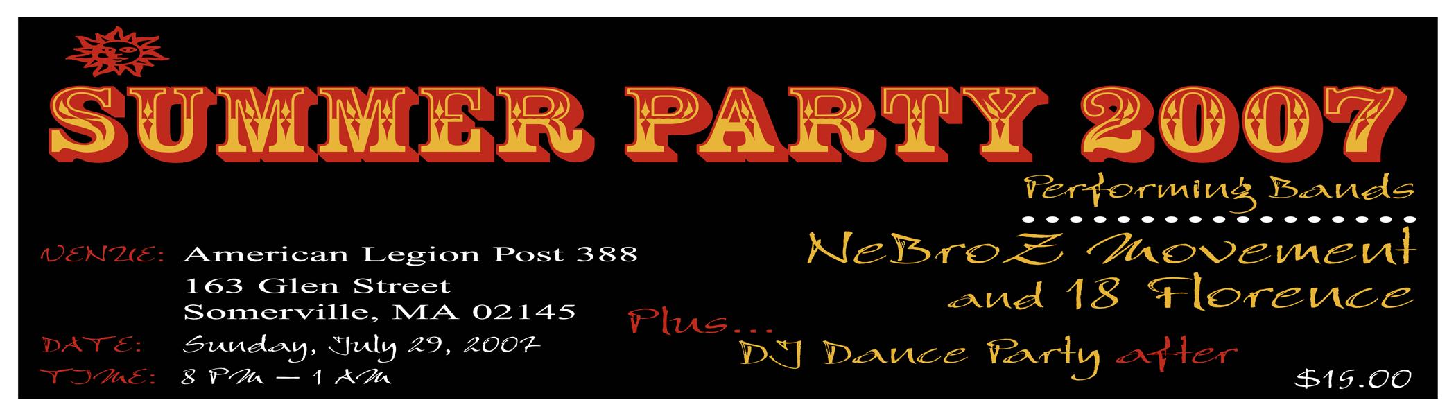 Be There When : July 29, 2007 Sunday......8PM to 1AM Where: American Legion, Post 388, 163 Glen St. Somerville, MA 02145 Price: $ 15 Only Featuring: NeBroZ MoveMenT, 18 Florence, Mayan Tamang, DJ Neebor, Special Appearance on Dj Dance Party : DJ Gorkhali from DC So Be There;;Don't Miss The Ultimate Bostonian Party@@@