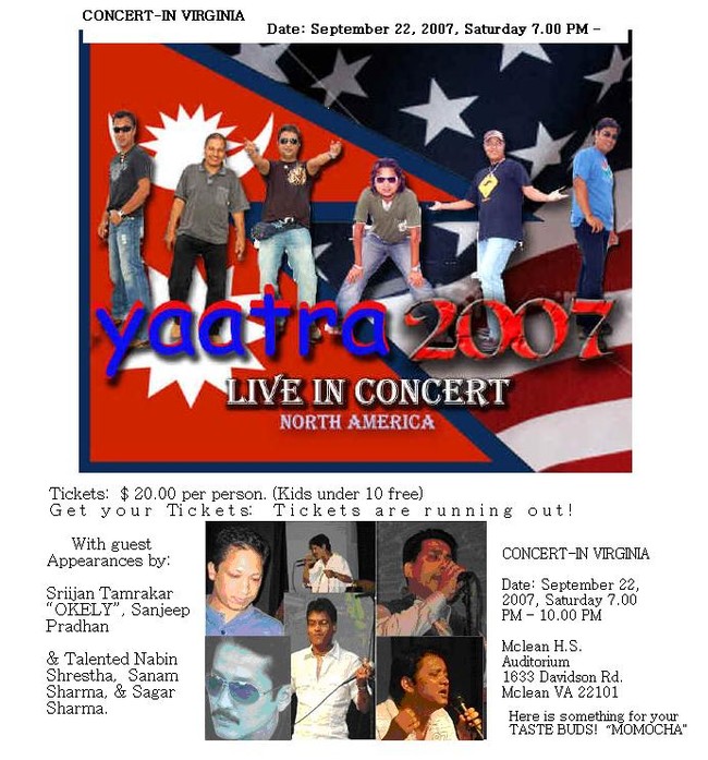 SHOW IS ORGANISED BY NEWAH ORGANISATION OF USA.THE SHOW WILL BE OF FULL OF ENTERTAINMENT WITH LIVE SONGS AND MUSIC BY NEPALI ARTISTS SANJAYA SHRESTHA,SUGAM POKHAREL,SAROJ DUTTA,PRAVEEN MANANDHAR,JYOTI GHIMIRE AND BHUPENDRA BAJRACHARYA.CHEEERSS.......