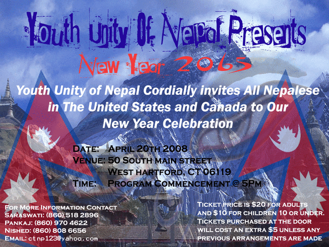 Party - Youth Unity Of Nepal Welcomes you to the 2065 New year party @ West Hartford, COnnecticut.