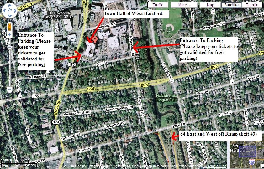Take 684 N towards 84 E. Take exit 9E to merge into 84E. Take exit 43. Take a left on the first light (park road). Take a right onto South Main Street. Entrance to the parking is to your right after crossing Burr Street.