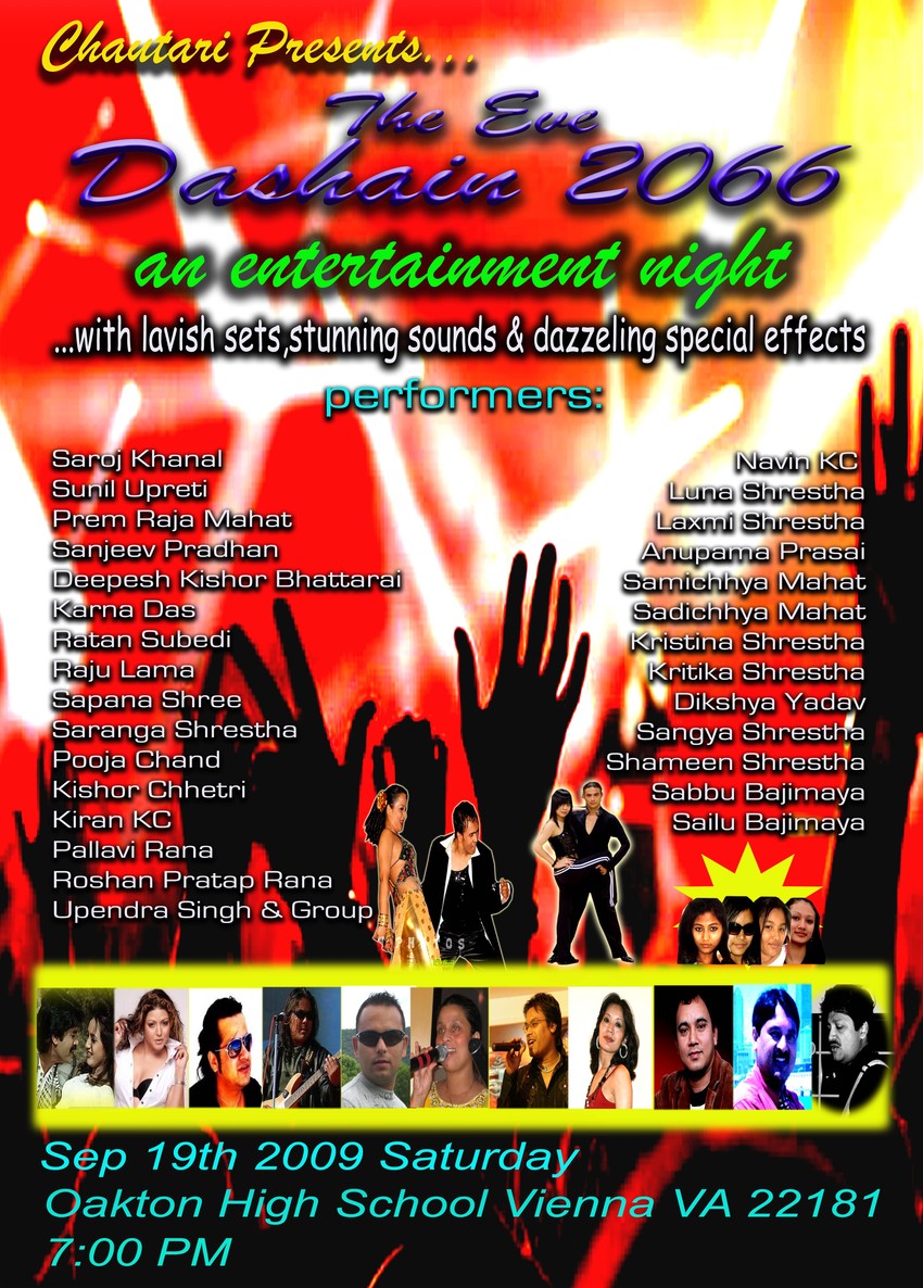 Chautari requests all our community people to come and participate @ Dashain Entertainment Night and celebrate a festive season - Eve Dashain 2066.