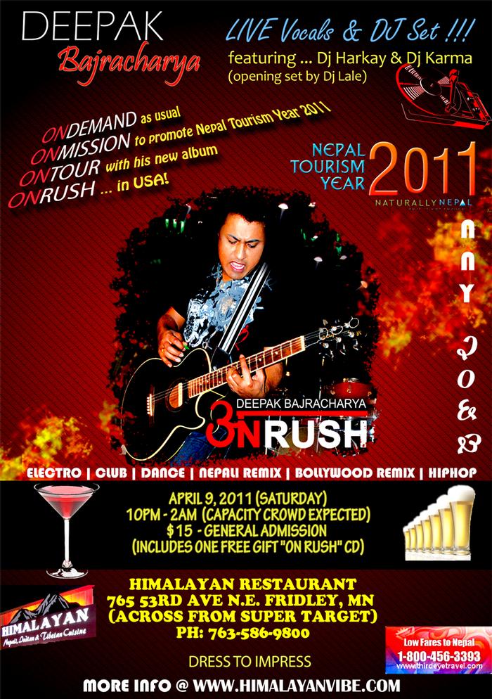 GET READY FOR LIVE MASHUP -- NEVER HEARD B4 REMIXED SET BY DEEPAK BAJRACHARYA ON DECKS W/DJ HARKAY & DJ KARMA. OPENING SET BY DJ LALE.