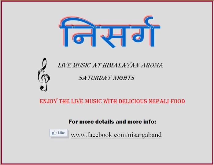 Nisarga is a Nepali rock band formed recently in Dfw. They have been performing in Himalayan Aroma Restaurant, Irving, Texas every Saturday nights starting at 9:30pm-2:00am. The entrance is free beverages will be served. Enjoy the live music with delicious Nepali food.