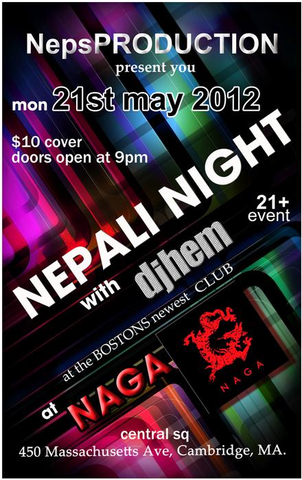 night. ________________PARTY DETAILS_______________ Date: 05/21/12 Time: 9:30pm -01:00 am Venue: NAGA is at the heart of central sq ( 450 massachusett ave, cambridge, MA 02139 ) ?PLEASE BRING IN YOUR PHOTOGRAPHIC +21 ID? _________________TICKET PRICES___________ Ticket - $10.00 till 11:00 pm Ticket- after 11:00 pm $15.00 at door P.S.- $10:00 tickets will only be till 11:00 pm and $15 there after. __________________ DJ _________________ Djhem _________________Transportation__________________