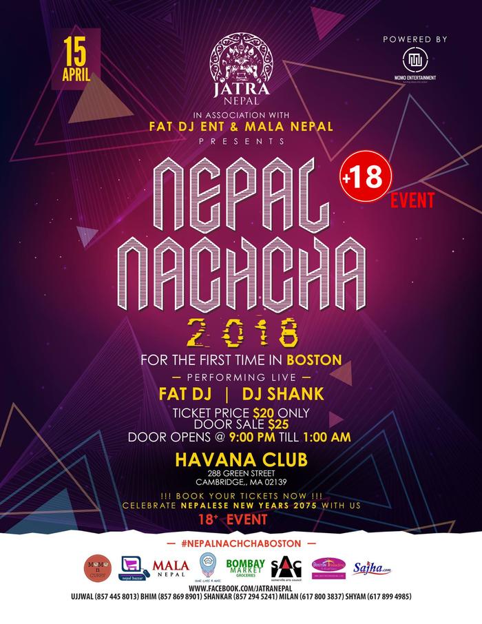 Nepal Nachcha is a globally celebrate Nepali festival and because this is the first time this festivity is coming to Boston, it didn't feel right to leave the young Nepali diaspora out of the celebration, so everyone 18 and over is now welcome to celebrate the incoming of the new Nepali year with all of us. This only means the party will be louder, the celebration will be grander, and we can all usher in the year 2075 B.S. together!
