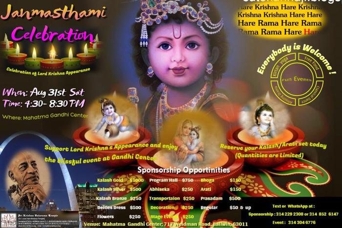 All are welcome to Celebrate Birthday of Lord Krishna With Bhajans - divine music - Mantra Meditations, Kids dramas & activities, Kalash Abhisekha - bathing of Lord Krishna, spiritual lectures, Free Vegetarian food.