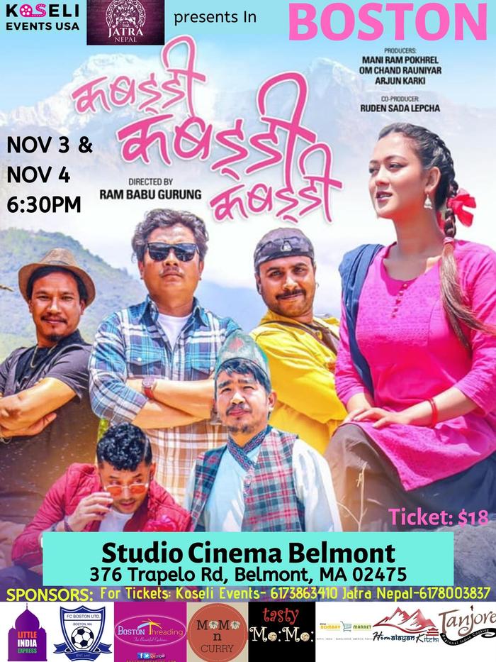 The Wait is Over....Blockbuster ЁЯОм рдХрдмрдбреНрдбреА рдХрдмрдбреНрдбреА рдХрдмрдбреНрдбреА In BOSTON. NOV3 and NOV4 @ 6:30PM @ Studio Cinema Belmont,MA . #KoseliEvents #JatraNepal presentation.