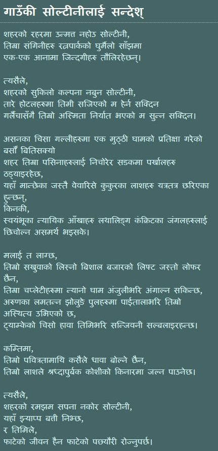 KHATARA CHITTHI RAICHA "GAUNKO SOLITINILAI", RAMRO LAGYO. Tara mero bicharma saharma pani solitini hunchan hola ni. yeso uhalai pani lekahu na. Deep Ji, kasto ramro rational din bhayeko.